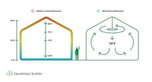 Destratification—ensuring warm and cool air blend evenly—helps reduce temperature inconsistencies in buildings.